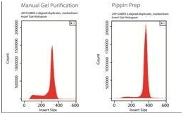 手工切膠回收Pippin Prep/Blue Pippin 幾個小時的手工操作 幾分鐘的手工操作 回收的核酸片段大小不精確 精確回收指定大小范圍的核酸片段 存在小分子量(LMW)污染 去除小分子量(LMW)污染 30-50%的回收效率 50-80%的回收效率 回收中、小核酸片段 可以回收大的核酸片段