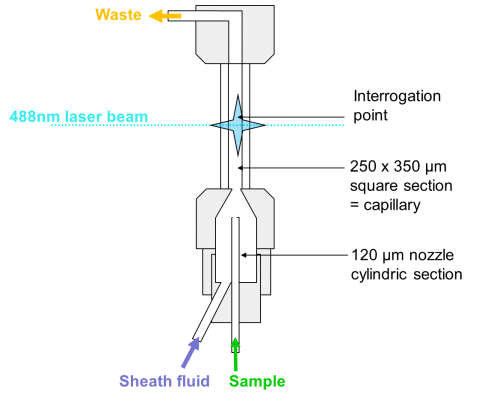 Partec擁有超過(guò)40年的流動(dòng)室設(shè)計(jì)經(jīng)驗(yàn)與技術(shù),其生產(chǎn)的高機(jī)械精密度石英流動(dòng)室內(nèi)徑250um×350um,不易堵塞,散射粒度范圍跨度涵蓋100nm至100μm。其核心技術(shù)是顆粒在高速流經(jīng)流動(dòng)室時(shí),通過(guò)高壓鞘液的包裹,準(zhǔn)確、穩(wěn)定、連續(xù)地通過(guò)各個(gè)激光的光斑中心,被激發(fā)的熒光信號(hào)通過(guò)光膠耦合下的大孔徑物鏡被最大程度地接收。高精度石英流動(dòng)室的專(zhuān)利技術(shù)可保證所有參數(shù)的精確度達(dá)到很高,即變異系數(shù)CV≤2%,樣本采用計(jì)算機(jī)控制推進(jìn)器技術(shù),其單一方向通過(guò)流動(dòng)室,有效避免了交叉污染。