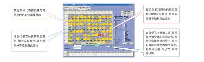 各種不同的PM平板上包被了多種活體細(xì)胞生長需要依賴的基質(zhì),因此可以進(jìn)行不同生長條件下的測試。包括有C.N.P.5.滲適壓.PH值、化學(xué)藥物等基質(zhì)條件下細(xì)的表型的測試,目前PM表型板25塊,測試的表型達(dá)到了2400種,已經(jīng)可以用于革蘭氏陰性細(xì)菌,陽性細(xì)菌、酵母和絲狀真菌細(xì)胞表型的研究。