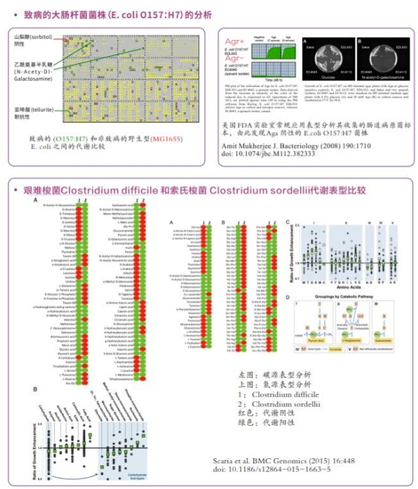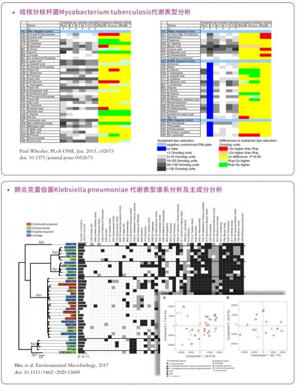 通過分子生物學(xué)手段往往無法區(qū)分同種微生物的不同菌株,更無法對相同菌株在不同環(huán)境下的特性進(jìn)行對比分析,而PM系統(tǒng)則可快速鎖定其代謝差異,為后期進(jìn)一步的研究指明方向并提供相應(yīng)數(shù)據(jù)。特別適合微生物代謝、致病機(jī)理研究以及進(jìn)行流行病學(xué)分析。